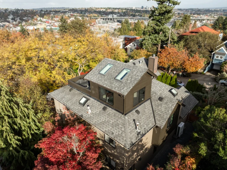 We transformed an outdated rooftop deck into a 302 sq ft fully enclosed, heated third-floor office with stunning Seattle views.