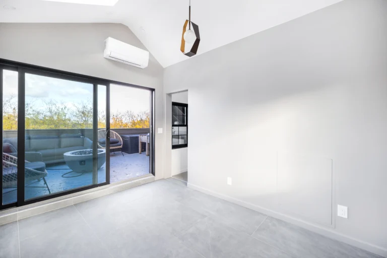 A dedicated mini-split HVAC system ensures year-round comfort, creating a quiet, modern workspace designed for focus and privacy.