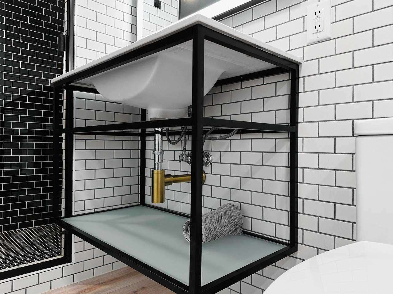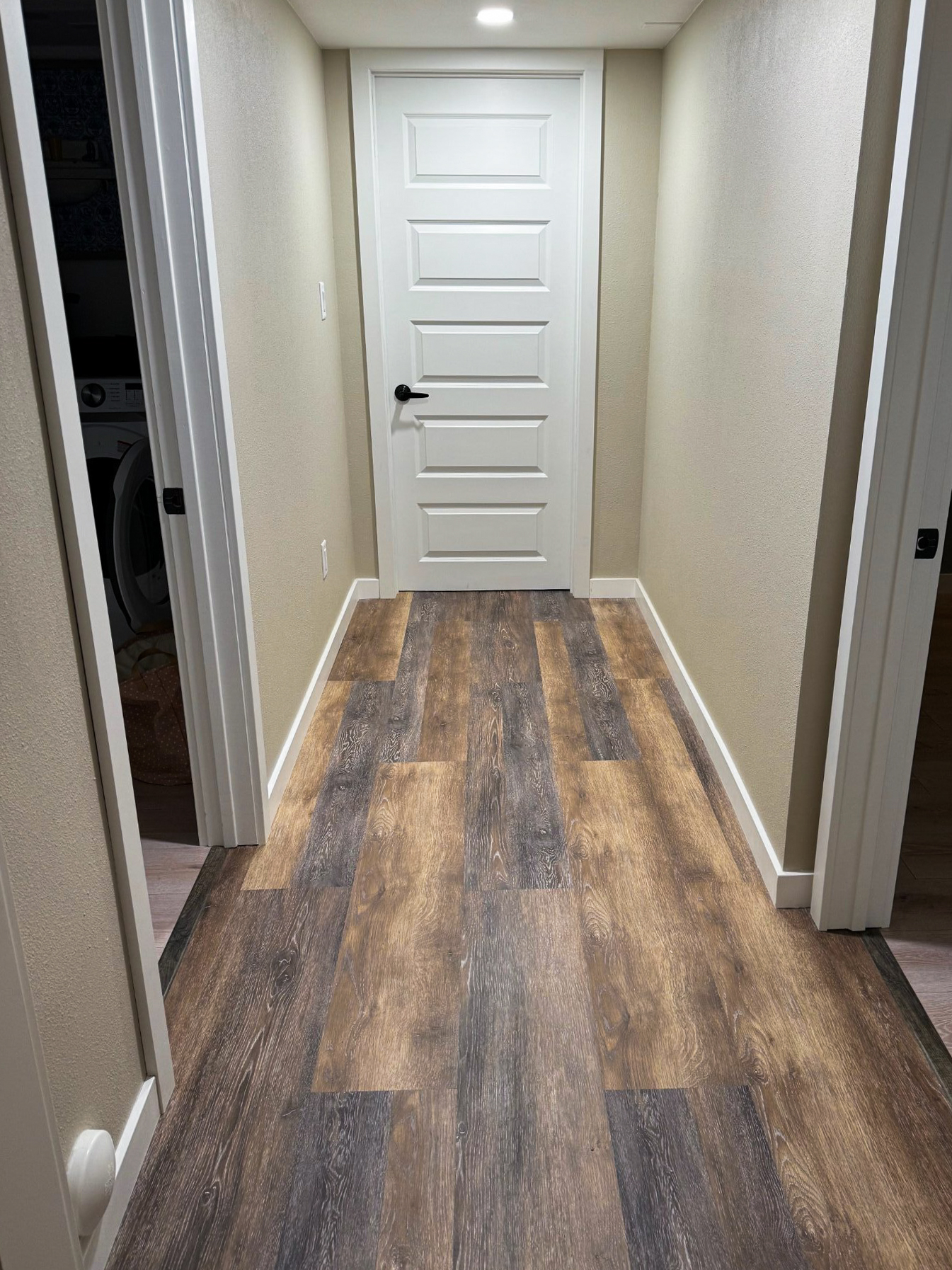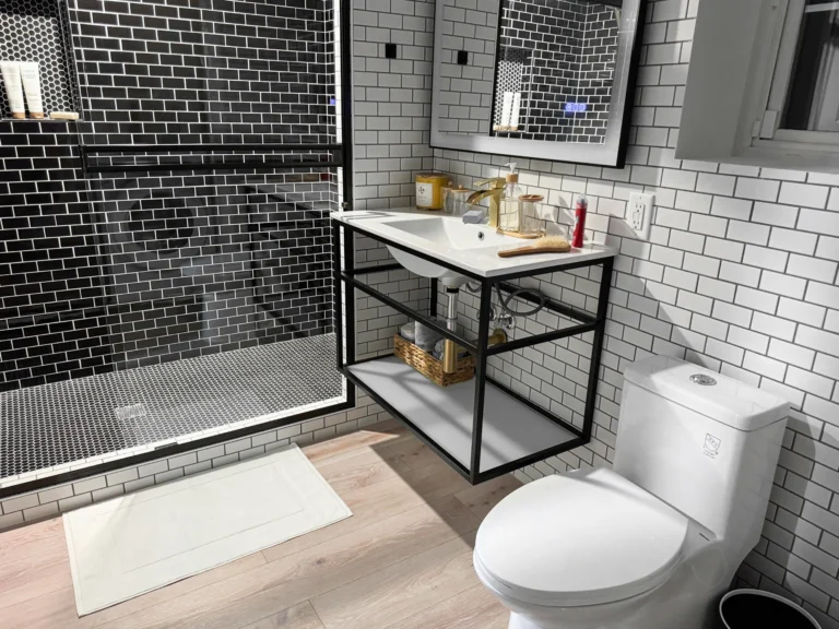 As part of the project, we fully equipped the bathroom with a shower cabin, toilet, sink, ventilation, and waterproofing. A convenient laundry area was integrated into the same zone. Two areas — 129 and 170 sq. ft. — were transformed into comfortable bedrooms. Another 116 sq. ft. was converted into a private home office with good sound insulation — an ideal solution for remote work. And 169 sq. ft. was used for the bathroom and laundry area.