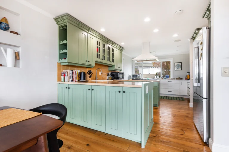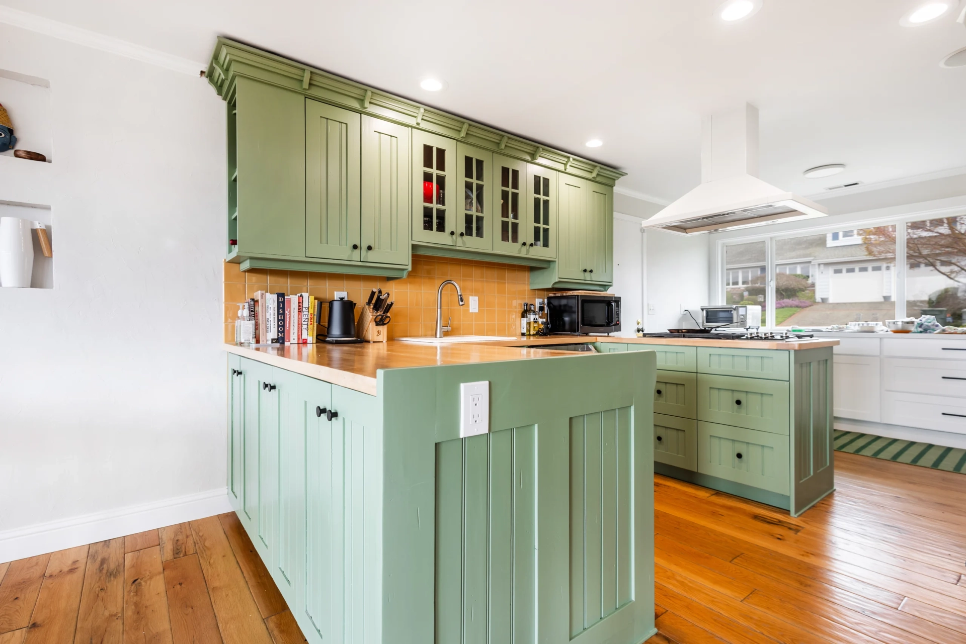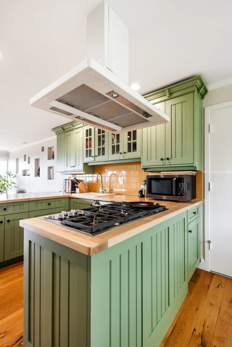 Kitchen update with refreshed cabinet fronts, maintaining the existing layout and style.