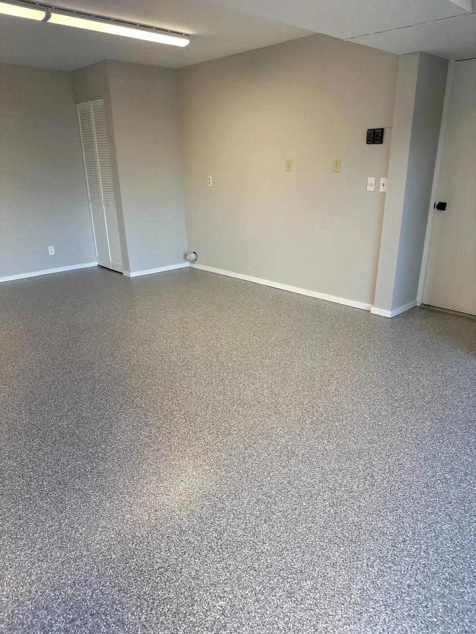 Integrated Living Space: We transformed a cold lower-level garage into a comfortable 250 sq. ft. living area and functional workshop by building a new insulated dividing wall and updating all flooring, immediately integrating the new space into the main house.